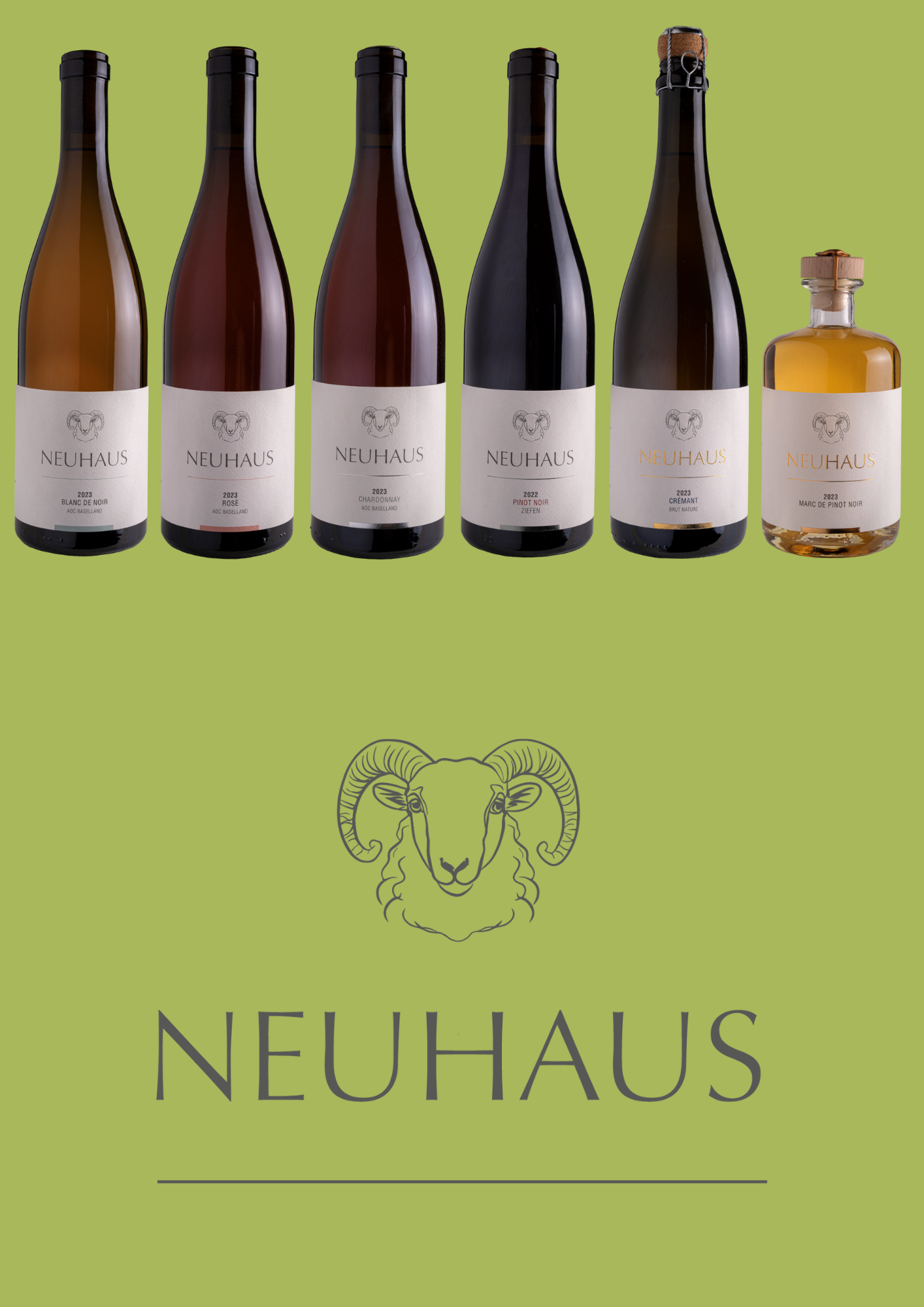 1 Flasche Blanc de Noir, AOC Baselland, 75 cl 1 Flasche Rosé, AOC Baselland, 75 cl 1 Flasche Chardonnay, AOC Baselland, 75 cl 1 Flasche Pinot Noir, AOC Baselland, 75 cl 1 Flasche Crémant Brut Nature, AOC Baselland, 75 cl 1 Flasche Marc de Pinot, 50 cl